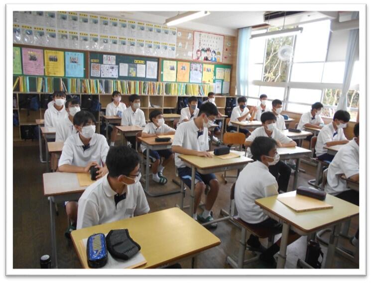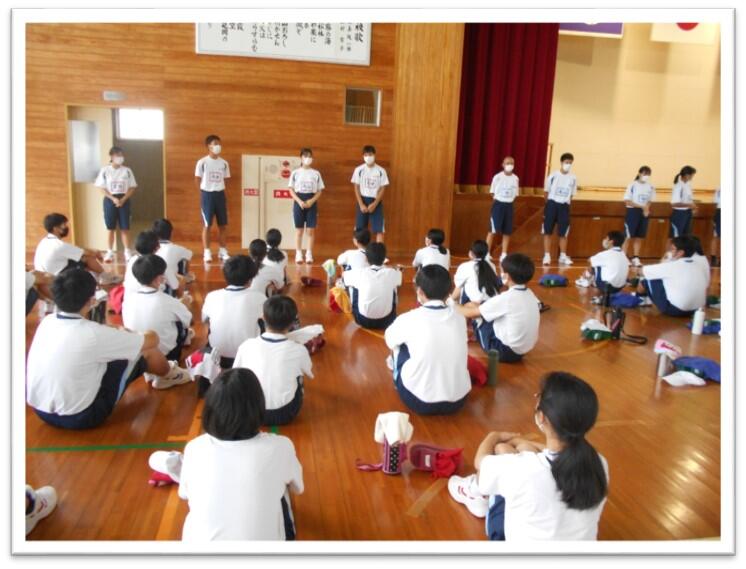 多目的室に集まり、事前指導を実施しました。一人一人の瞳は真剣です。頑張ってきてほしいです。