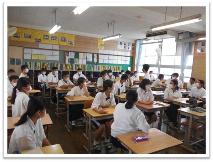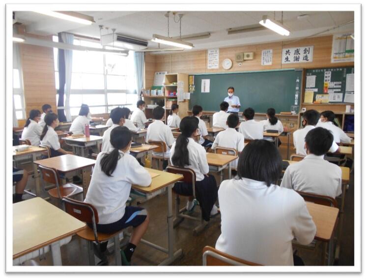 高等学校の出前授業を体験することで、進路(職業)について深く知るきっかけづくりとして2年生が体験しました。