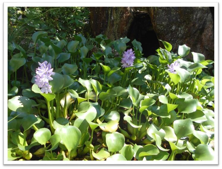 9月になり、ホテイアオイの紫色の花がきれいに咲いています。ホテイアオイはこの時期になると、うすい青紫色の、花茎3cmほどの可憐な花を咲かせます。