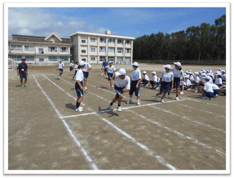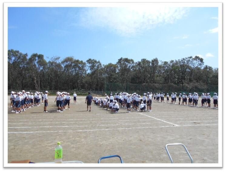 久しぶりの晴れ間です。各学年ごとに学級対抗リレーの練習をしました。