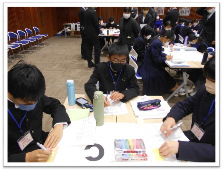 子どもたちは、専門家による講話の後、グループごとに地域住民を交えて、熟議を行いました。