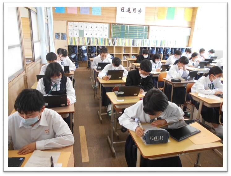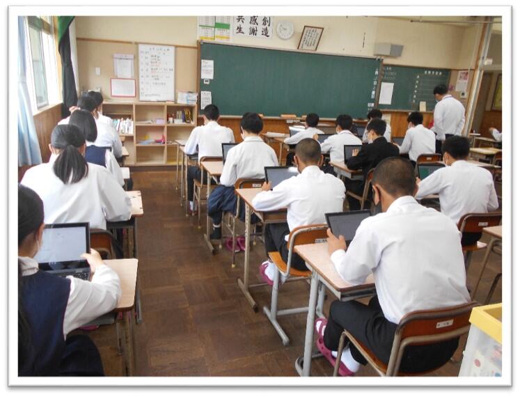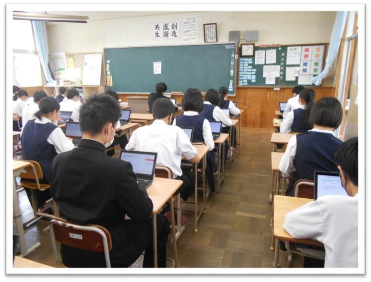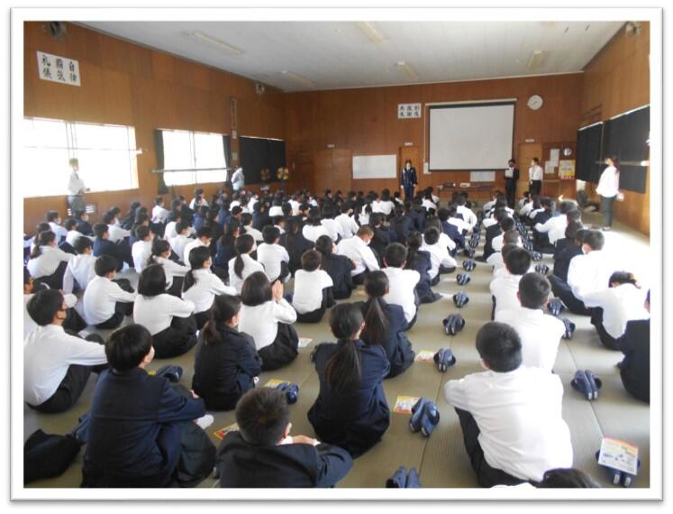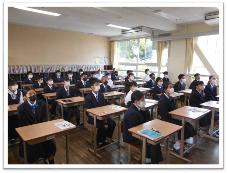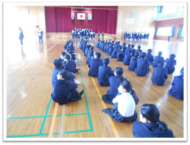 参観授業の後は、生徒は下校し、学級懇談の中で放送によるPTA総会資料の説明を行いました。