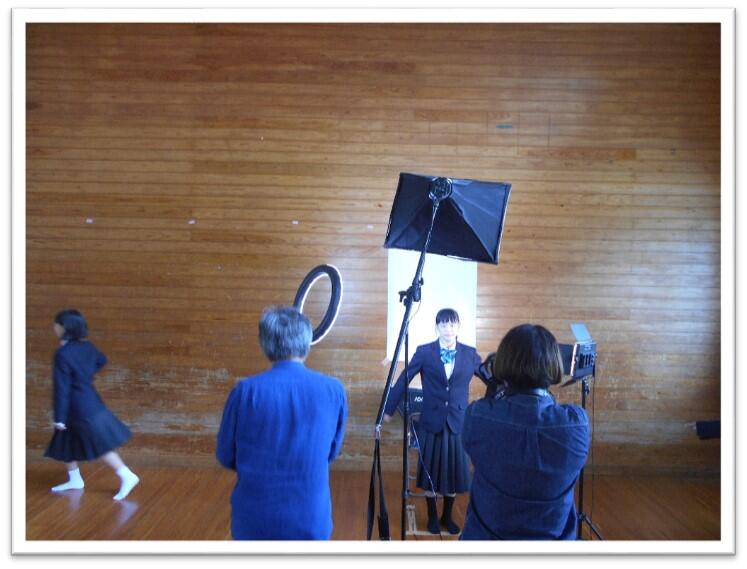 クラスごとの集合写真と個人写真の撮影を行いました。