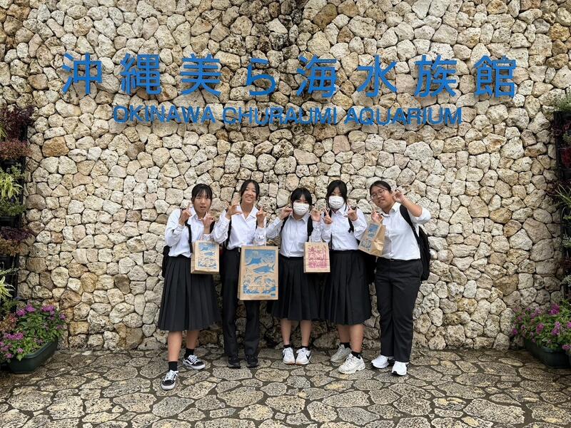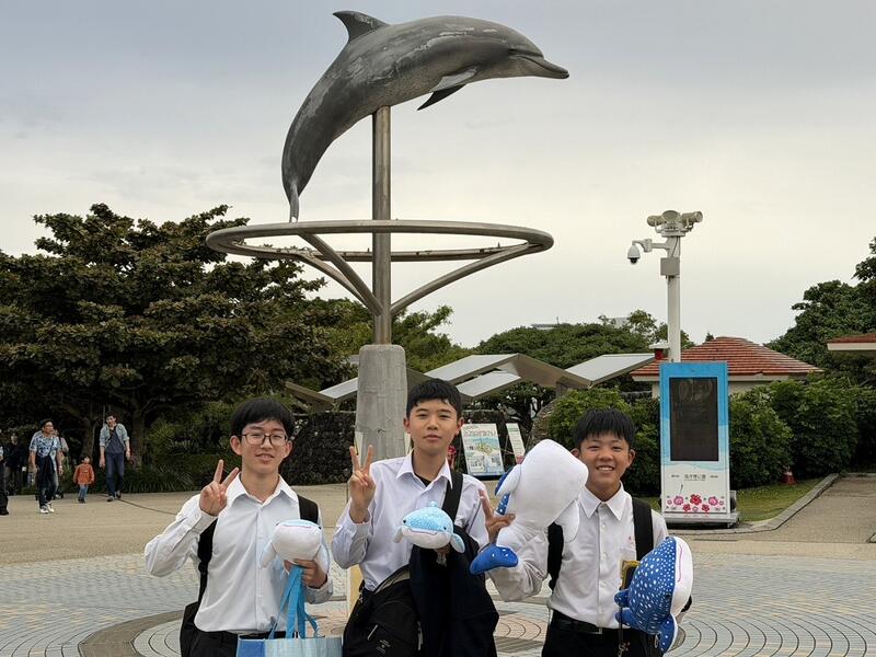 とうとう修学旅行最終日となりました。さきほど確認したところ、2年生全員、班別研修を開始したそうです。世界遺産「首里城」や沖縄の有名スポット「国際通り」など、班別に分かれての学習となります。昼食も班別に決めた店での食事となります。昨日の「美ら海水族館」の写真を掲載します。