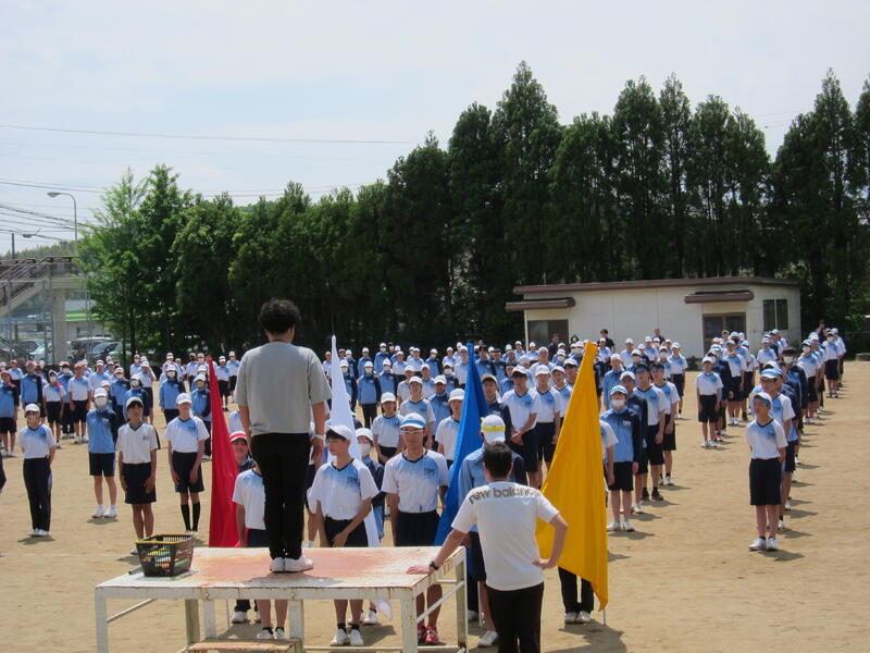 5月12日(日)体育大会本番に向けて、実行委員長の山村翔さんの進行のもと、先週から全体練習がスタートしました。