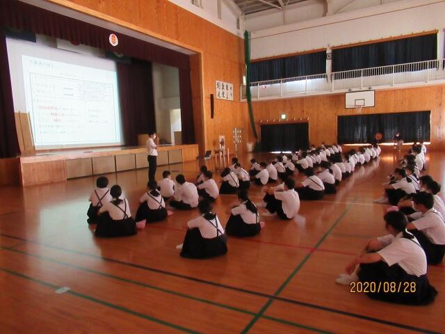 現在、新型コロナウイルス感染症防止の指針を受け、全校一斉に集めての行事や集会、マスクをつけないままの発声・合唱等を伴う活動については、現在難しいこと等から、中止とさせていただきました。