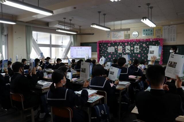県英テストは、県内の多くの学校が参加して行われる英語のテストで、昨年度までの英語の授業内容を、どのくらい理解しているかを見るテストです。