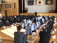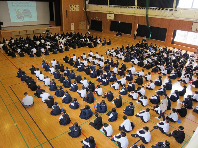 19日(水)、全校生徒を対象に交通安全教室を実施しました。延岡警察署の方から講話をしていただき、交通安全に対する意識を高め、自転車に関する法令改正について学びました。今年度も「交通安全モデル校」に指定され、指定証交付式もありました。危険回避能力をつけるにも、日頃から交通安全に注意し、周囲をしっかり見て行動しましょう。