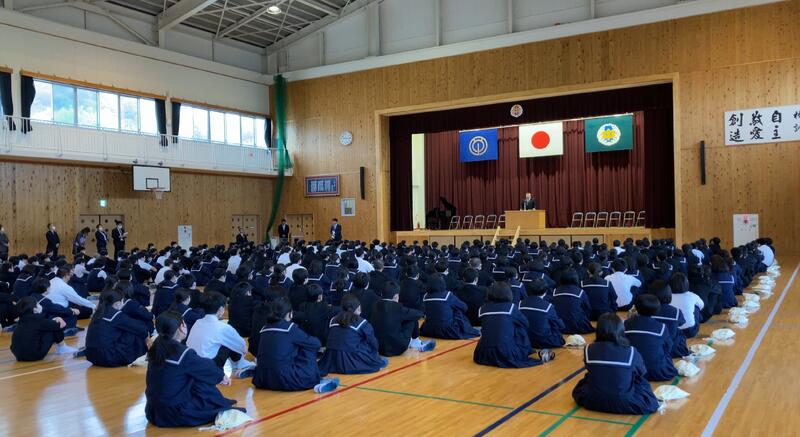 全校生徒が体育館に入る3年ぶりの行事でした。全校生徒が一つの場所に集まると一体感がでますね。皆さん、真剣に聞いていました。