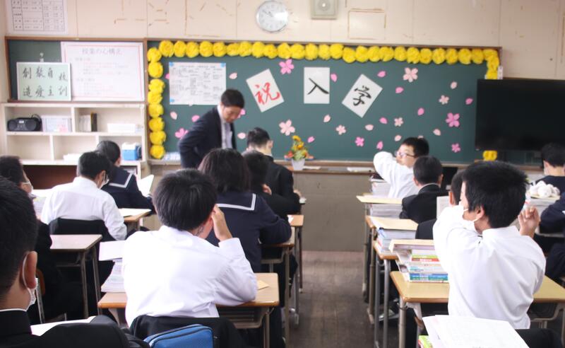 始業式では、3名の代表生徒の発表と井上校長からの話、校歌斉唱がありました。井上校長からは「変えることと変わることにチャレンジしてほしい」「正しく判断して正しく行動してほしい」と話がありました。校歌斉唱では、コロナ禍で十分に歌えなかったにも関わらず、大きな声で歌うことができました。始業式後の学年所属発表や部活動担当発表では、職員一人一人に生徒のみなさんから大きな拍手が溢れ、体育館の中が温かい雰囲気になりました。