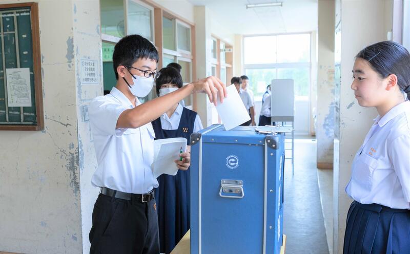 9月21日(木)に1年生12名、2年生10名が立候補し、実施されました。図書室からの中継で、それぞれの想いを演説し、投票は実際の投票箱をお借りして使用しました。3年生の選挙管理委員の皆さんのお陰でスムーズに進めることができました。
