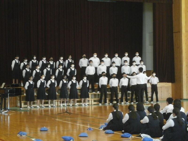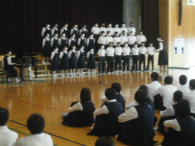 卒業式の歌では、卒業生が「3月9日」を、全校生徒全員で「そのままの君で」を歌いました。2曲とも思いのこもった感動的な歌声でした。