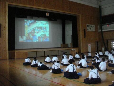 2年生は進路学習として、体育館で高校紹介のビデオを見ました。本日は、聖心ウルスラ学園と延岡高校の紹介ビデオを見ました。これをきっかけにして、自分の将来を考え、これからの進路決定に向けて、イメージをもって過ごしてくれればと思います。2年生も入試まであと約1年半となり、目標をもって、それを達成するための姿を日々見せられるような学年へ成長してくれることを期待しています!