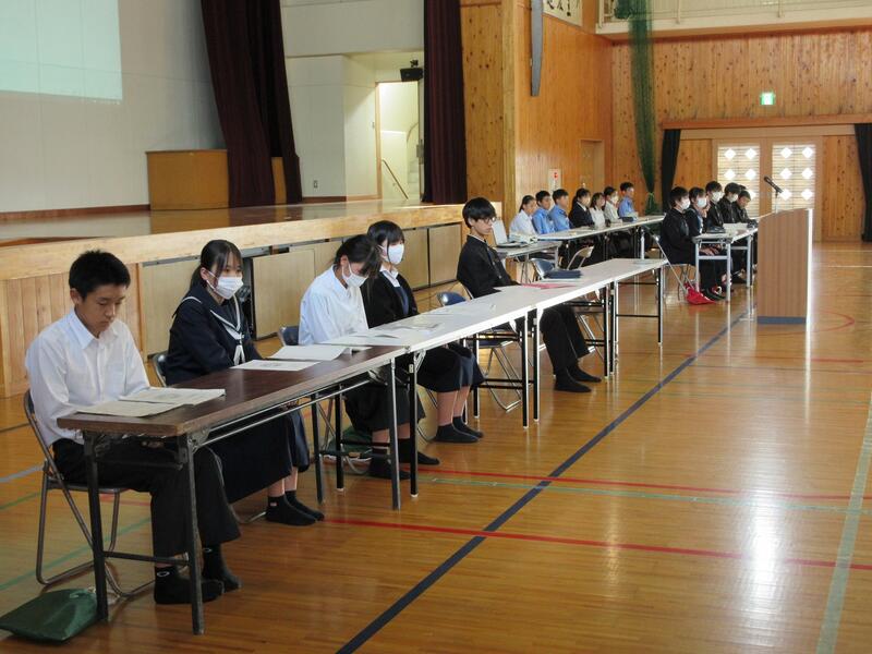 ①開会宣言 ②学校長あいさつ ③生徒会長あいさつ ④諸注意