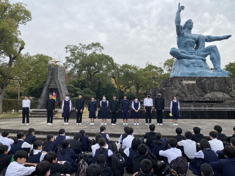 事前学習、千羽鶴作成と準備を重ね、いよいよ平和集会本番です。改めて平和の大切さを実感することができました。
