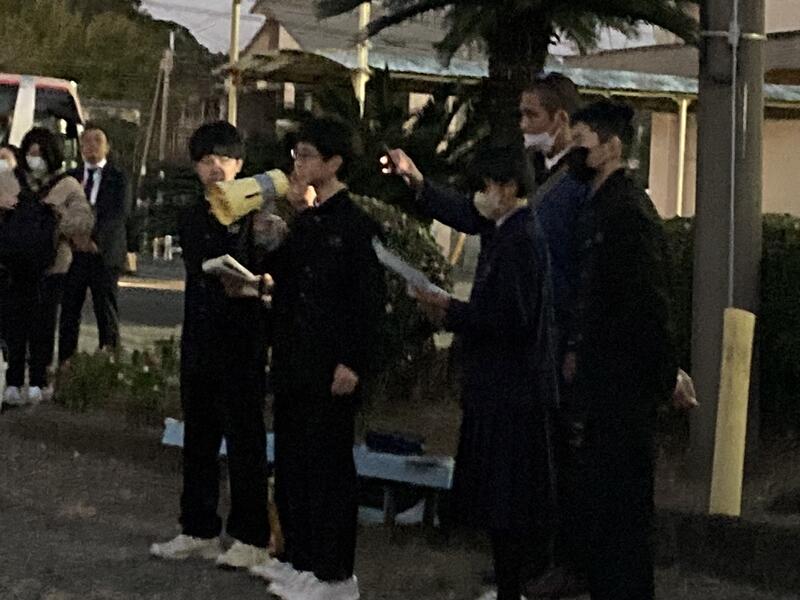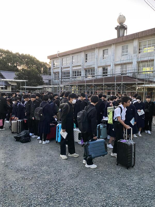 修学旅行出発式が行われました。これから3日間、しっかり学んできます。