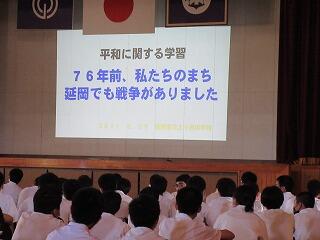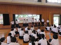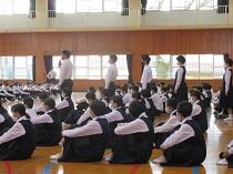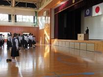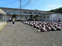 7月2日 1年生が中庭、2年生が体育館で学年集会を行いました。