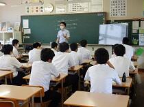 講師はケーブルメディアワイワイの濵田泰範氏。自分のふるさとで働く方のお話を聞き、職業の意義や地域社会に貢献する意味を学びました。