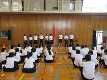結団式も放送で行い、団色決定は3年生のみの参加となりました。