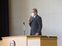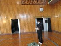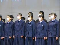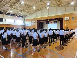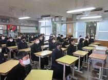 新型コロナウイルス感染症による県の緊急事態宣言発令中のため、始業式は放送で行い、