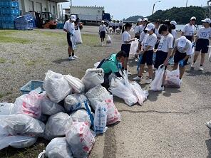 土々呂中からも、生徒153名が、体操服や部活動のユニフォームなどで参加しました。午後からは、一般向けのマリンスポーツ体験会も行われ、こちらにも参加する生徒がいました。継続して行われている清掃活動により、生徒の地域への美化意識も高まることが期待されます。