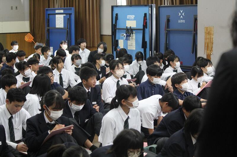 1月19日(金)に、2年生は「高校説明会」を行いました。今回の高校説明会は、高校の先生から説明を聞くだけではなく、各高校の模擬授業を複数校体験するという形式でした。模擬授業を体験させていただくことで、高校で実際にどのような学習をするのか、また、情報収集だけでなく自分の適性についても感じることができたようです。各高校からは本校卒業生にも参加していただき、より知りたい情報を聞くことがきました。今後の進路選択に参考にさせていただきます。延岡高校、延岡商業、日向工業高校、延岡工業高校、門川高校、富島高校の先生方、高校生の皆さま、このたびはお忙しい中説明会にお越しいただき心から感謝申し上げます。