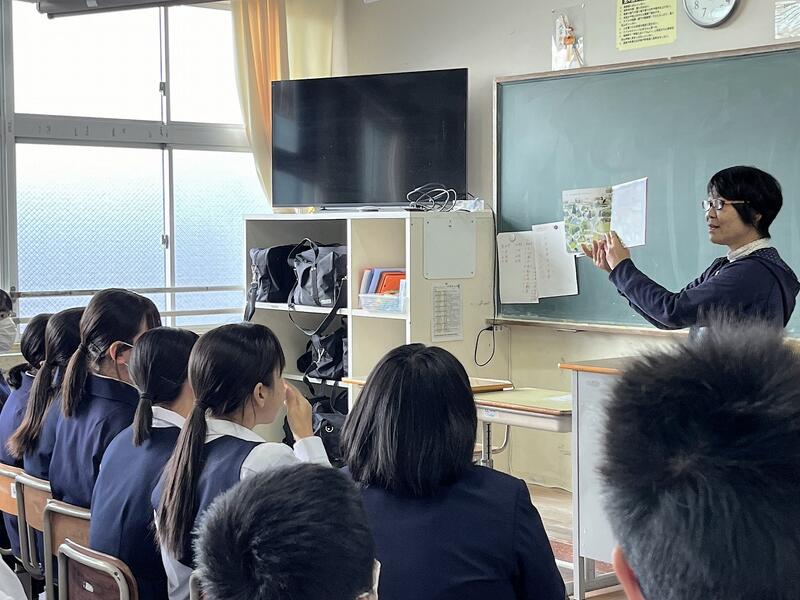 本日の5・6校時に、1年生の総合的な学習の時間に「未来を考える」講話として、延岡市役所企画課の黒木由紀子様をお招きし、「10年後を考える」と題して延岡の未来を考えるためのお話をしていただきました。延岡市の10年後を考えるとともに自分自身の10年後を考える機会となりました。黒木様ご講話ありがとうございました。