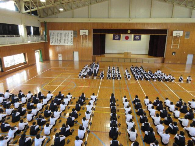 本日、朝の時間に生徒集会と地区駅伝大会の推戴式を行いました。