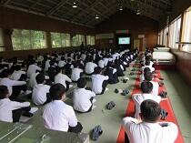 7月2日 1年生が中庭、2年生が体育館で学年集会を行いました。