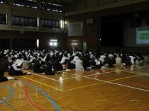 12月3日 生徒集会を実施しました。各専門委員会の取組反省と目標の確認、学力クラスマッチの表彰、保体委員会から換気・消毒のお願い、ペットボトルキャップ回収の協力へのお礼などがありました。
