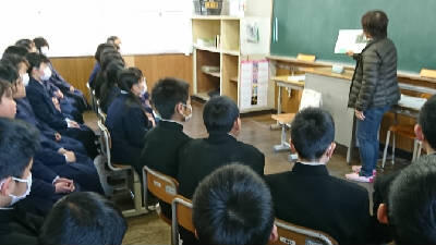 1年生は全員一斉に体育館で教護教諭が授業をしました。
