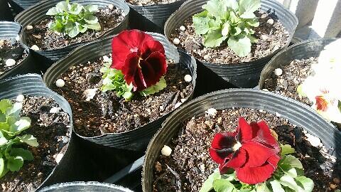 今年は昨年に比べて成長が遅いのでが心配していましたが、ようやくパンジーも咲きはじめました。ただし、このまま卒業式まで放っておくわけではなく、花がら摘みを行います。花がら摘みとは、花を咲かせたままにしておくと栄養がそこに集中してしまうので、大きく育てるために、花をつけている茎を根本からひねるように摘み取っていきます。