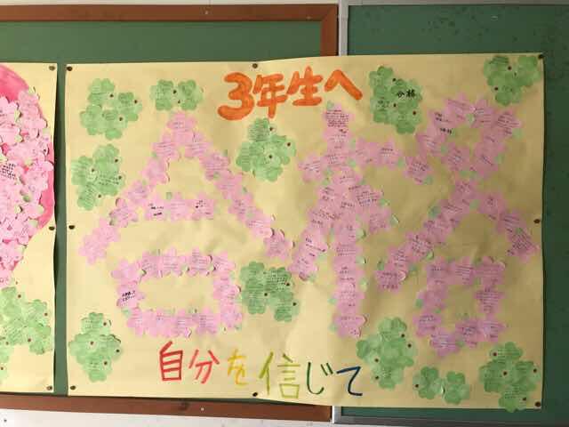 1,2年生一人一人が書いたメッセージを生徒会役員がサクラの木にしました。