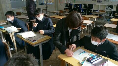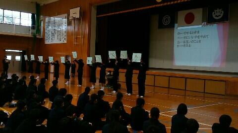 この日は、在校生が「この地球のどこかで」「仰げば尊し」を練習しました。卒業式の歌は、式の中で一番盛り上がる場面です。感動の卒業式を演出してもらいたいと思います。