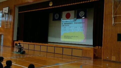 生徒会が、ケータイ・スマホについてのアンケート結果を分析して発表をしました。社会でもスマホ依存やゲーム依存が問題になっていますので、正しいつきあい方を身に付けてもらいたいと思います。