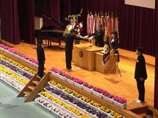 3年間無欠席・無遅刻・無早退というのは、なかなかできることではありません。絶対に休まないという強い気持ちも必要ですし、日頃から健康管理(栄養のバランスのとれた食事や予防など)もしっかりやっていたということでしょう。そして何より、家族の支援あってのこそと思います。この皆勤賞表彰は、支えてくれた家族への表彰でもあります。改めまして、おめでとうございます。