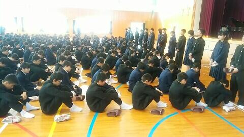 1年間を締めくくる校長先生の話です。聞く態度も立派でした。先日の卒業式から、1,2年生の態度に変化が見られています。自覚がでてきたということでしょうか。校長先生からも褒めていただきました。