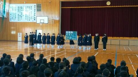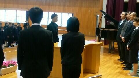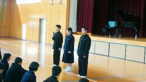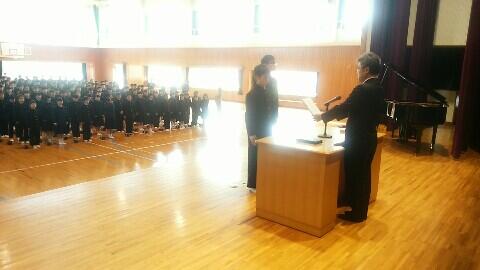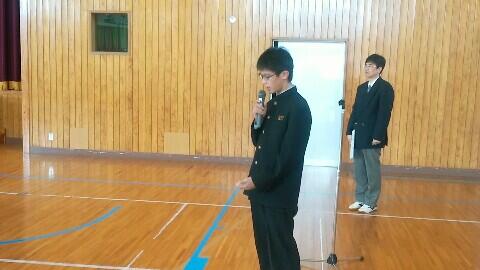 年間反省発表では、1年生代表で中須陽斗くん、2年生代表で宇都宮綾花さん、生徒会代表で和田樹香さんが発表しました。3人とも、1年間を振り返って素晴らしい発表でした。