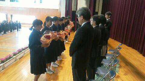 先日新聞などで発表もありましたが、定期異動に伴い、10名の先生方を見送ることになりました。今日は離任式があり、生徒や同僚職員との別れを惜しみました。