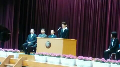 3年前、春風がそよぐ中、一回りも大きな制服に身を包み、先輩方が見守る中、この体育館で入学式を迎えました。あのときと同じ場所、同じ風景にいながらも、3年という月日が、ブカブカの制服を袖も丈も短くし、たくさんの経験が私たちを大きくたくましくそして何より成長させてくれました。