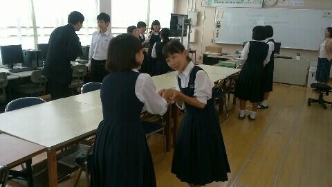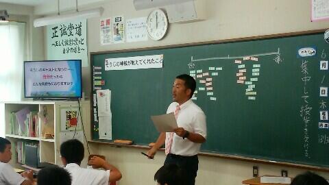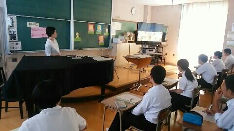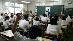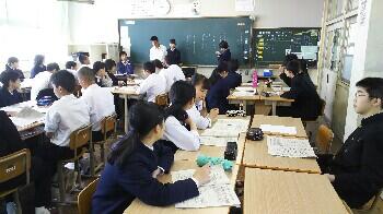 2年生は、今村教諭(本校2年目)が道徳の研究授業を行いました。主題名「勤労、公共の福祉」で、「ディズニー そうじの神様が教えてくれたこと」(ソフトバンククリエイティブ)を通して、社会貢献と勤労に対する意義について考えました。