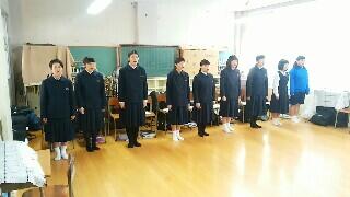 最後に、生徒会の提案で卒業式に向けて校歌の練習をしました。長時間座っていて寒かったこともありちょっと声が小さかったですが、卒業式当日は体育館に響き渡る校歌が聴けると思います。