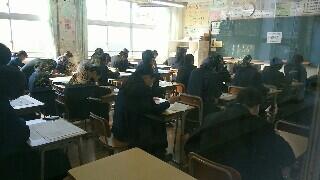 本日5校時の学級活動の時間に、私立高校入試に向けての確認をしました。それぞれの高校ごとに集まり、担当の先生から入試に向けての話がありました。インフルエンザも流行っていますので、予防をしっかりして、ベストなコンディションで入試に臨んでくださいね。