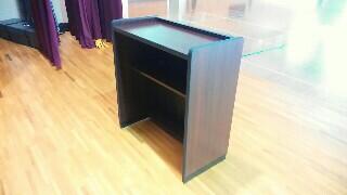 PTAの教育振興費で、体育館で使用する「演台」と「車いす」を購入しました。「演台」は、式典や講演などで活用します。「車いす」は、緊急時の対応において松葉杖しかなかったので購入しました。
