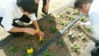 昨日から緑化委員がパンジーの花がら摘みをしています。3年生はいよいよ入試が迫ってきました。卒業する日も刻々と迫っています。盛大な卒業式になるように立派な花で式場を飾ってあげたいですね。