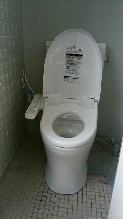 先月から始まったトイレ改修工事もようやく終わりに近づいています。各トイレフロアに、洋式トイレを1カ所設置する工事です。生徒用には通常の洋式トイレ、来客用には温水洗浄便座が設置されました。