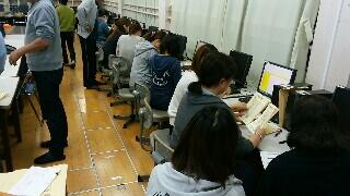 第3回PTAバザー委員会が行われました。12月3日のPTAバザーに向けて、今日も多くのバザー委員の方がみえられました。今日の作業は予約申し込みの集計です。学級ごとに、生徒一人一人の予約品を入力していきます。