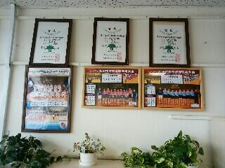 土々呂中学校は、玄関を入ると真っ先に中体連などの表彰やパネルが目に入ってきます。