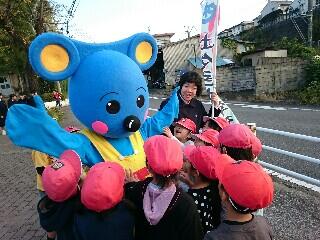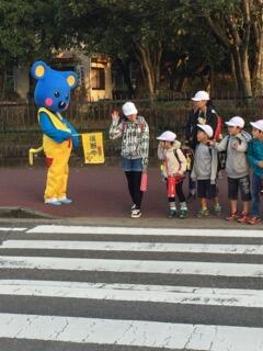 "とっチュウ"の登場に小学生は興奮状態であいさつを返してくれました。