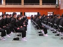 明日から行われる県立高校一般入試に向けて、事前指導を行いました。体調管理に気を付けて学習した成果をだしてください。明日の朝は、気温が低くなるという予報がでていますので、寒さ対策もしてください。本日(2日)3年生は、給食後下校となります。時間を有効につかってください。